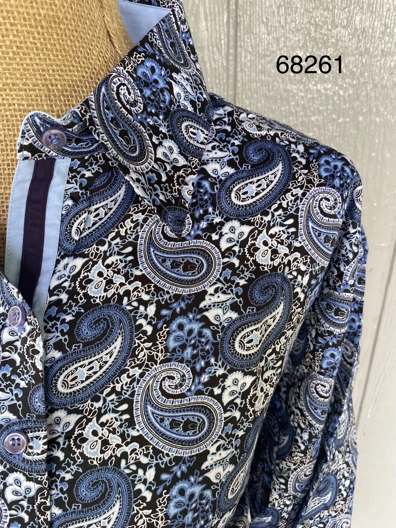 Navy and Light Blue Paisley Button Up